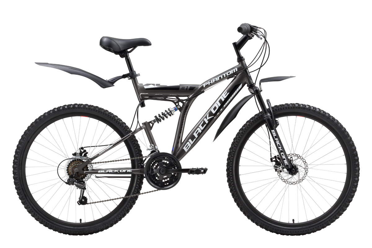 Двухподвес с дисковым механическим тормозом Black One Phantom Disc, простой и удобный велосипед для велопрогулок по пересечённой местности. Phantom Disc собран на крепкой стальной раме и укомплектован переключателями фирмы Shimano. Подбор одной из 18 передач выполняется вращением вокруг руля переключателей Revo Shift. На любой дороге вы можете быть уверены в надёжности колёс собранных на двойных алюминиевых ободах, устойчивых к «восьмёркам». Комплектация подножкой и быстросъёмными пластиковыми крыльями делает велосипед более комфортным. При желании иметь подобный горный велосипед на алюминиевой раме, можно рассмотреть двухподвес Black One Descender Disc.