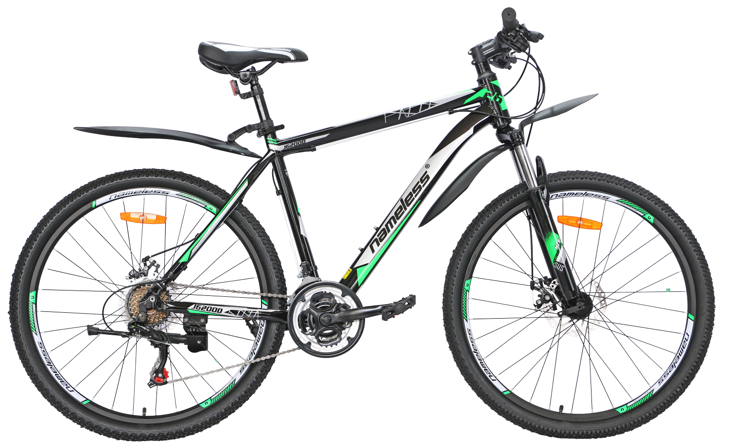 Велосипед Nameless J6200D 26 (2021) — маневренная модель с ярким дизайном, надежная, отзывчивая, с прекрасными скоростными характеристиками. Отлично показала себя на разных типах покрытий, поэтому подойдёт и для поездок по городу, и для вылазок на природу. Горный велосипед 2021 года, имеющий колеса 26 (стандарт), легко управляется, и для разгона ему не требуется много времени. Дисковые механические тормоза гарантируют высокую степень безопасности и успешное совершение любых маневров даже на сложных участках пути. Колеса диаметром 26" дюймов и прочная рама позволяют байку выглядеть внушительно и солидно.